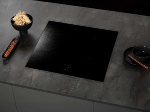 SIM3644MB60 cm bred induktionskogeplade med et elegant, matsort design og en keramisk glasoverflade med lige kanter.